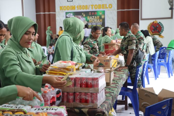TOBELO, TERBITMALUT.COM — Menjelang idul fitri 1445 Hijriyah, Kodim 1508/Tobelo menggelar bazar murah, yang bertempat di aula Makodim 1508/Tobelo jalan Kawasan Pemerintahan Desa MKCM Kecamatan Tobelo Kabupaten Halmahera Utara, Selasa (2/4/2024).