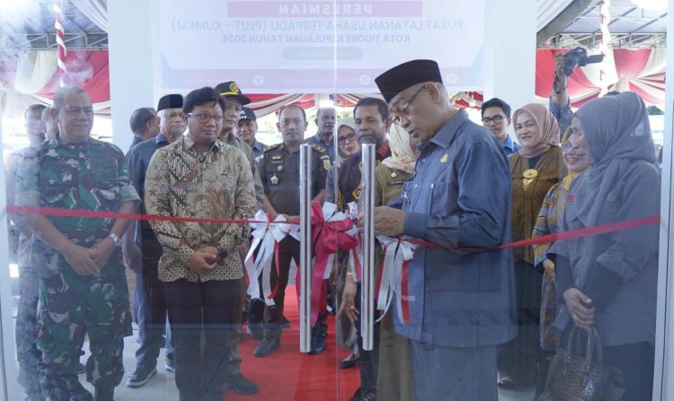 TIDORE, TERBITMALUT.COM — Upaya meningkatkan Sumber Daya Manusia (SDM) di bidang Koperasi dan Usaha, Mikro, Kecil dan Menengah (UMKM), Wali Kota Tidore Kepulauan, Capt, H. Ali Ibrahim meresmikan Pusat Layanan Usaha Terpadu (PLUT-TERPADU), di Gedung PLUT, Kelurahan Indonesiana, Kecamatan Tidore, Selasa (28/5/2024).